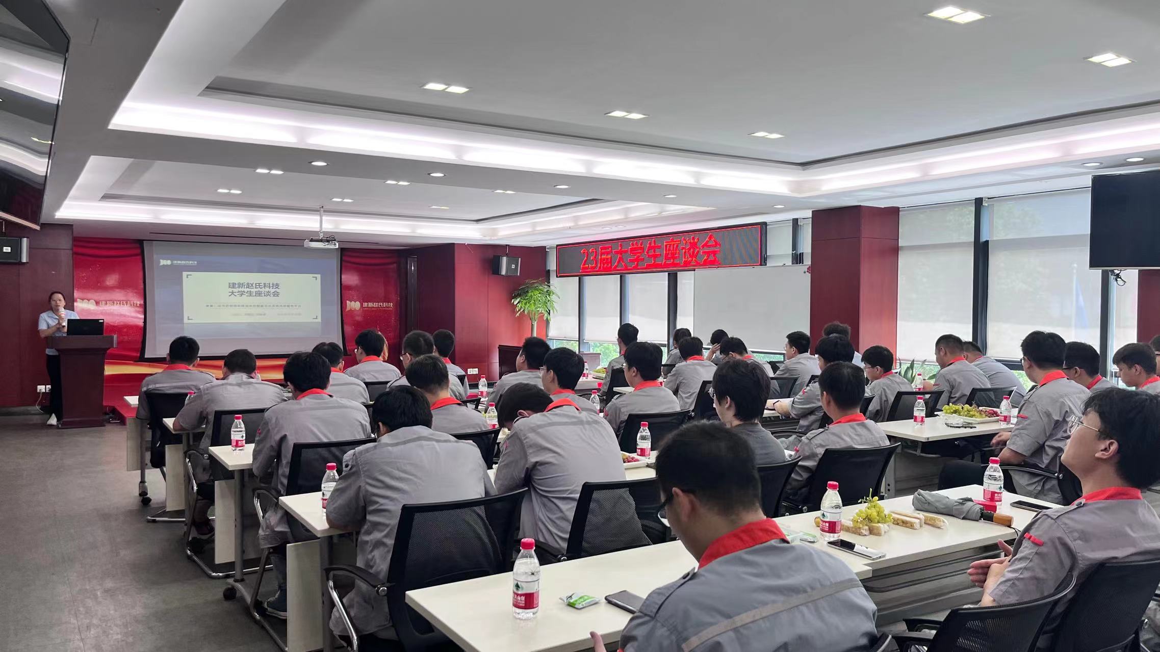為了解新入職大學(xué)生工作狀況及所思所想所需,營(yíng)造關(guān)心人才、重視人才、培養(yǎng)人才的濃厚文化氛圍,8月25日下午,建新人資行政中心組織開展一場(chǎng)別開生面的大學(xué)生座談會(huì),共有40余名大學(xué)生參加。
